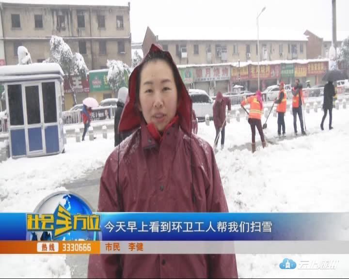 在城区各条路段,环卫工人们早早的就上岗作业,在暴雪中逆雪前行,低头作业,为居民出行保驾护航。