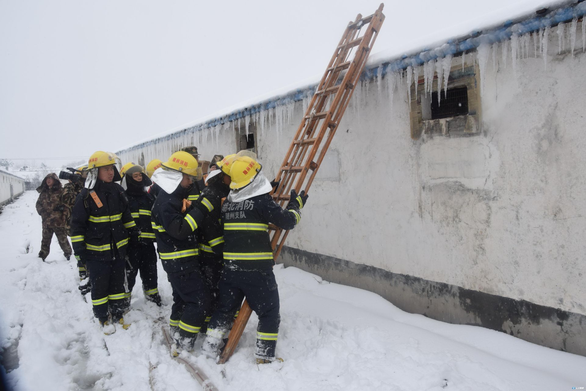 1月4日 8点半左右,随州市随县新街镇姜家湾村一养鸡场屋顶坍塌,随州市消防支队立即调派特勤中队消防官兵前往救援。