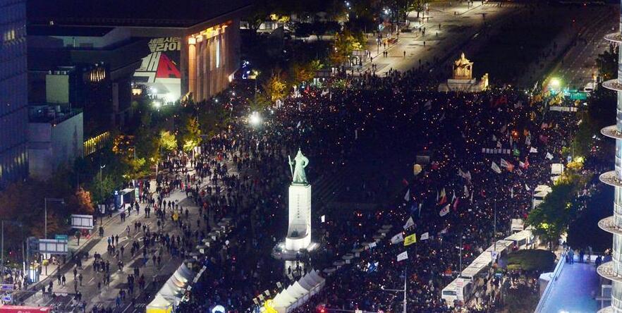 韩国多个市民团体29日晚共同在首尔市清溪川广场一带举行大规模烛光集会。据韩国媒体报道,主办方表示约有2万名民众参加集会,警方估计实际规模约为9000人。参加集会的民众高喊口号要求朴槿惠下台,并一度试图向青瓦台总统府行进,集会民众与警方发生对峙。主办方表示,将在11月12日组织更大规模的集会活动。