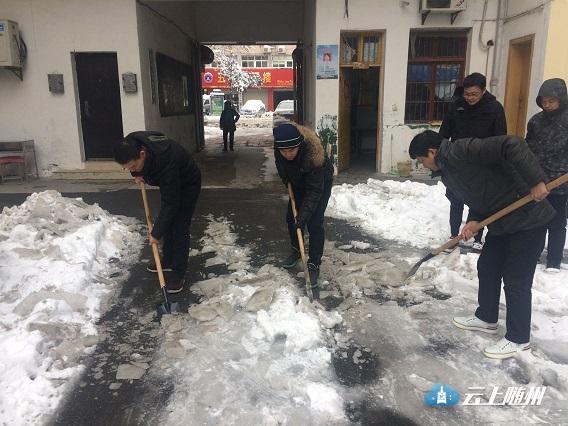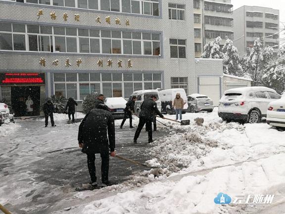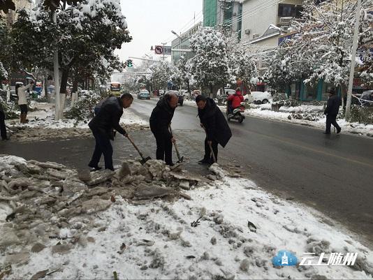 市房产局出动5辆车,组织房产系统干部职工87人清扫门前道路积雪,并督促物业小区做好积雪清理工作,保障居民出行。