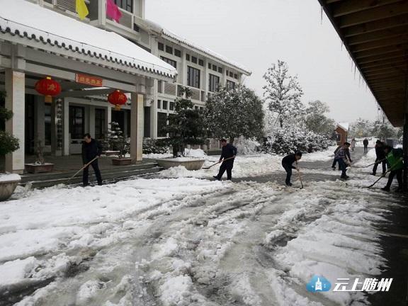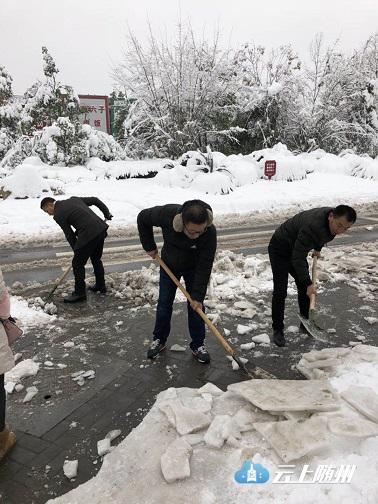 市“三办”一是组织两个专班,分赴各商混和新型墙材企业进行安全巡防,察看企业受灾情况,一方面组织企业员工开展自救,抢运砂石水泥等原材料,尽量把损失降至最低。另一方面配合企业开展隐患排查,对仓库厂房进行加固,对车辆设施进行转移安置,避免灾害再次发生。二是组织干部职工13人,出动铲车1台,分别到单位所在路段神农大道和迎宾大道清扫积雪,打落行道树上的积雪。