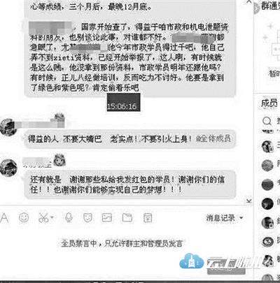 被指泄题后,有考生曾向北青报记者提供过一张QQ群聊天截图。截图中,一名培训机构的员工称,“国家开始查(泄题)了,得益于咱市政和机电泄题资料的朋友,也别谈论此事,对谁都不好”,并在群里对那些私发红包(购买答案)的学员表示感谢。随后,北青报记者添加其为好友,该工作人员称,只要交3万元,2018年考试也可以给靠谱答案,并称试题和答案是“别的学员传来的,很安全,不用操心”。