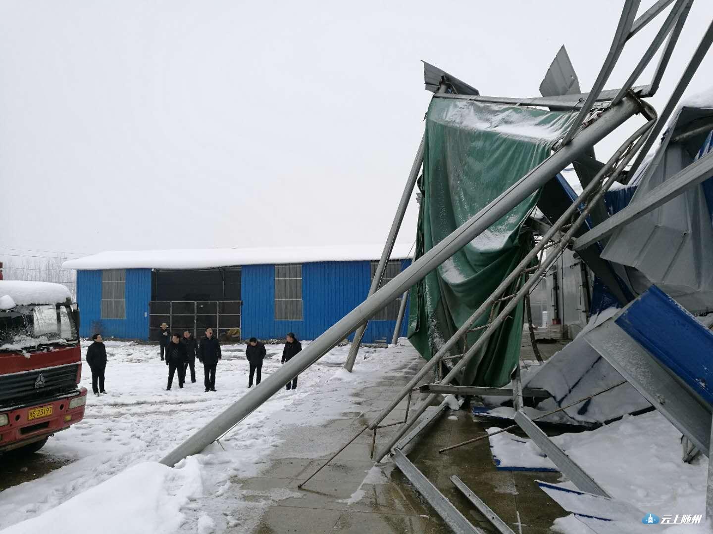 在暴雪过程中,安居镇王家楼村蔬菜合作社的蔬菜大棚和刘家台村琼圃现代农业公司的冷冻车间压塌,新街镇顺和畜禽公司的蛋鸡大棚和品韵农业公司的葡萄棚被压塌,损失惨重。陈兴旺现场指导及时组织除雪自救,恢复生产设施,减少灾害损失。