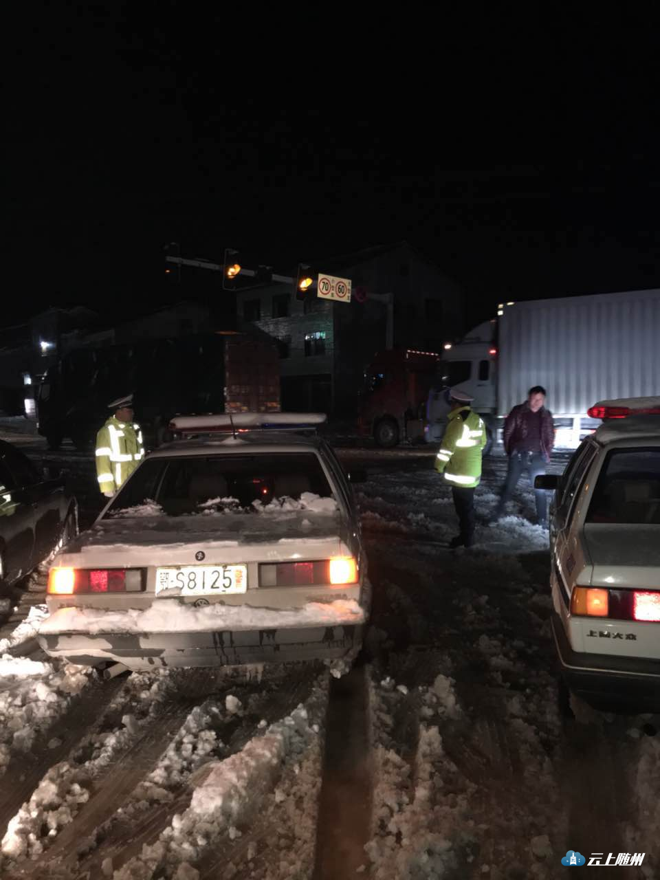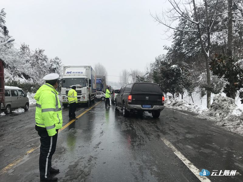1月3日、4日,随县遭受自有气象记录以来50年难得一遇的暴雪袭击,积雪厚度近20厘米。一时间穿境高速全部关闭,国道、省道、县道陆续瘫痪。警情就是无声的命令,随县公安局交警大队紧急启动恶劣天气预案,全体民警、辅警义无反顾地冲在危机重重的最前线,与暴雪恶劣天气展开了一场场殊死较量。考虑到大队警力严重不足(民警、协警累计百十号人)大队长钱耀武果断地合理、科学分配警力。交警警力力保重点国道、省道、县道,发动各农村“两站两员”协助管理“村村通”道路。