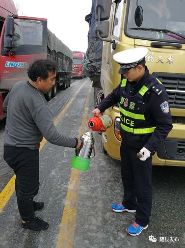 暖 心 (厉山镇派出所干警为国道被困的货车司机送开水) 刘 慧 / 摄