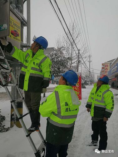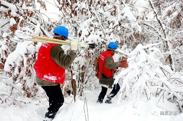 随县供电公司积极应对暴雪恶劣天气,在确保安全的提前下,组织抢修,尽快恢复供电。 镇 进 / 摄
