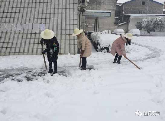 澴潭镇行政干部清扫积雪 何蕊君 / 摄