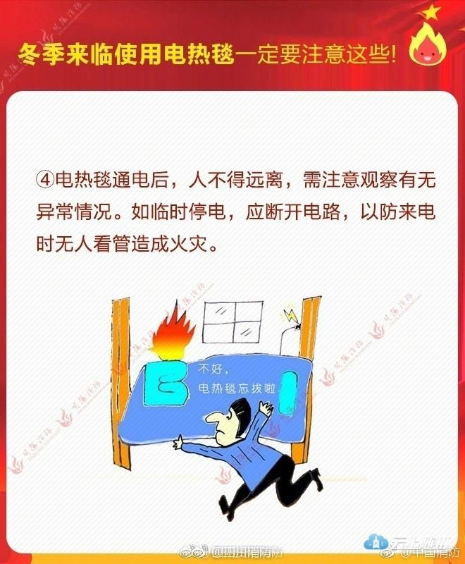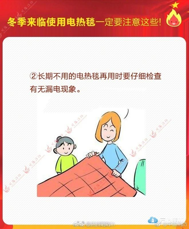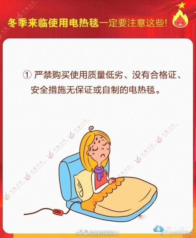 天气是越来越冷了,这么冷的天气,也容易使我们感到疲倦和困顿。大冷天的,是不是只想开着电热毯,裹紧小被子窝在被窝里呢?小小电热毯的使用也有大学问!稍有不慎就有可能引发火灾。来看电热毯使用安全事项。