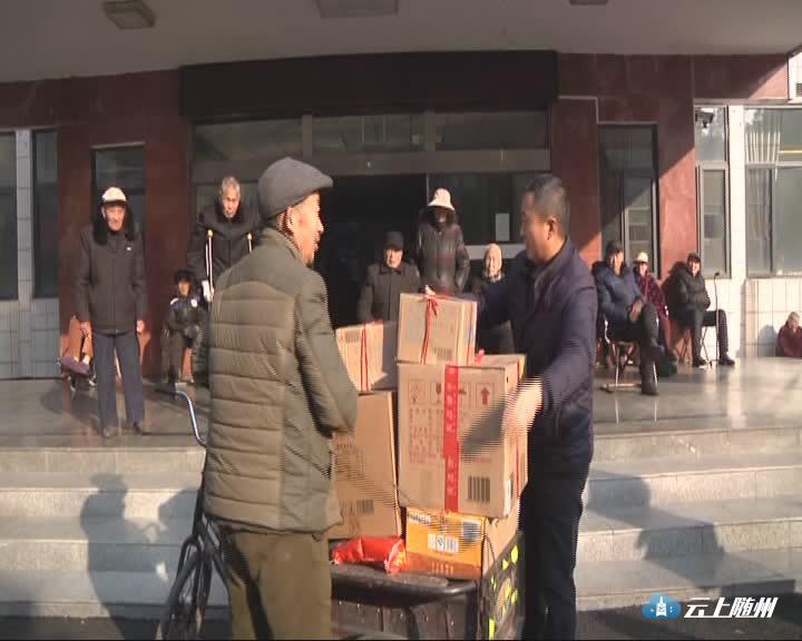 (采访:彭玉华邻居 程晓红)他们两个人辛辛苦苦的挣点钱,一年四季每天都是起早贪黑,每年我都看到这个时间,他们给福利院的送米送油送肉,他的精神一直值得我们大家学习。所有的年货装好后,彭玉华骑着他的三轮车出发了,不一会儿就来到曾都区第一社会福利院。住在福利院的老人杨大啟已经连续好几年看到彭玉华送物资了,他一边热心地向其他老人介绍,一边对彭玉华伸出大拇指。