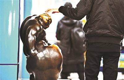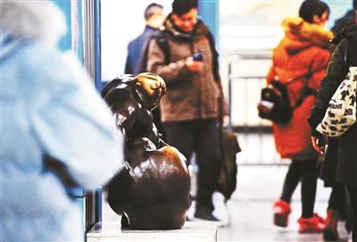 地铁站内雕塑被摸成“秃顶”?