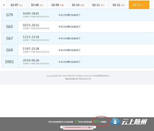 值得注意的是,今年的抢票软件并不好使。记者购买2月13日的北京-德州的火车票,指定了几个车次,在放票前启动某抢票软件,依然抢票失败。