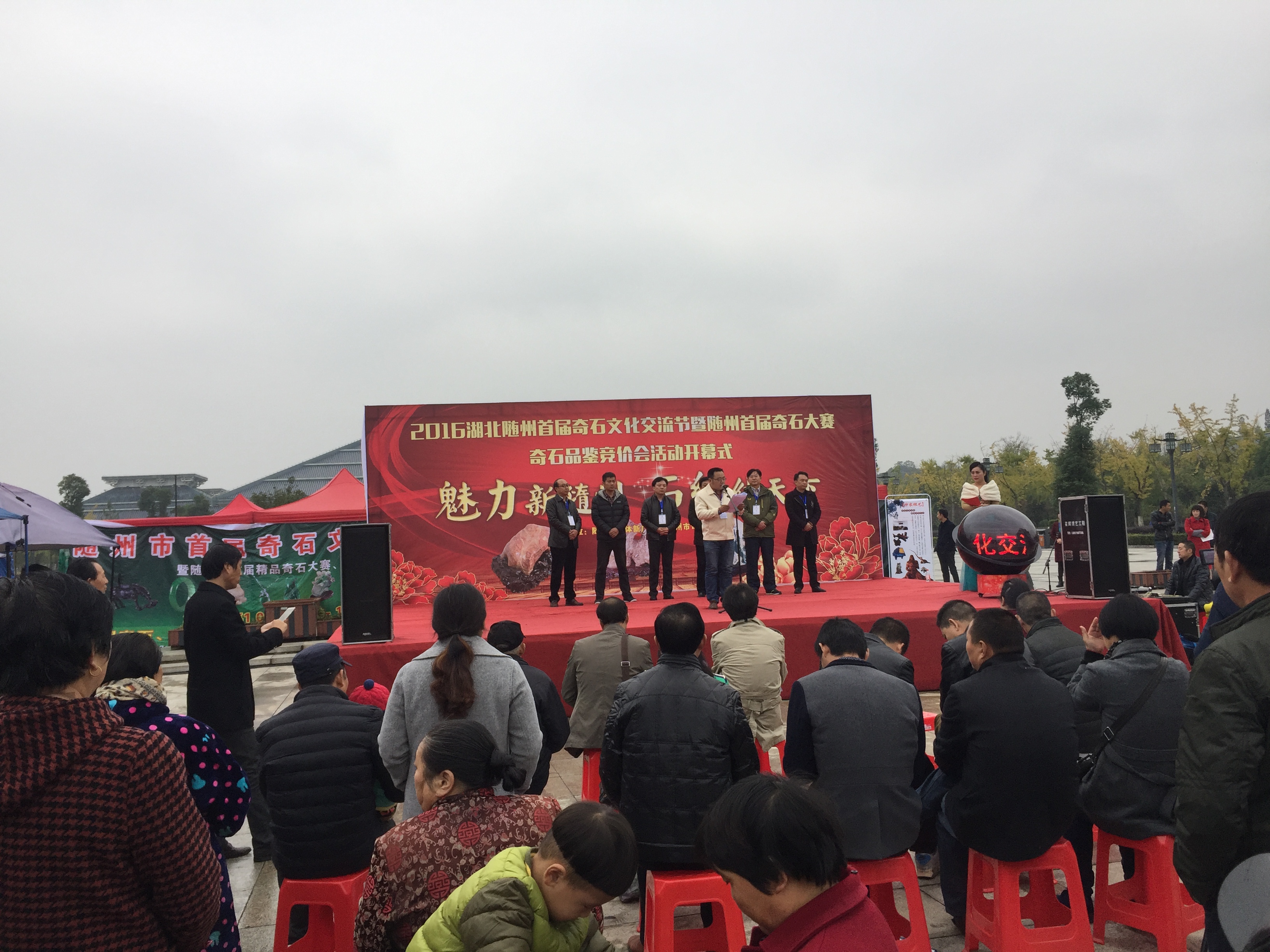 10月31号上午九时许,以“魅力新随州、石缘结天下”为主题的2016年湖北随州首届奇石文化交流节暨随州首届奇石大赛、奇石品鉴竞价会活动在随州博物馆盛大开幕,随州市奇石协会会长周波致欢迎辞。