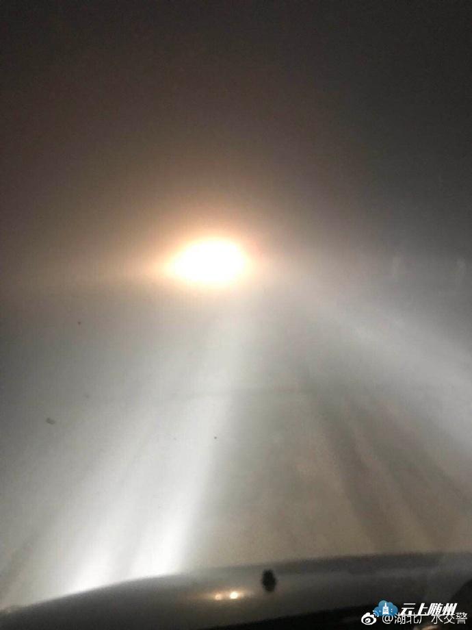 #恶劣天气预警# 昨晚10点 #湖北##广水# 107国道部分路段最大能见度只有15米。交警蜀黍提醒:广大司机朋友,大雾天气,请减速慢行,打开雾灯、双闪,谨慎驾驶!