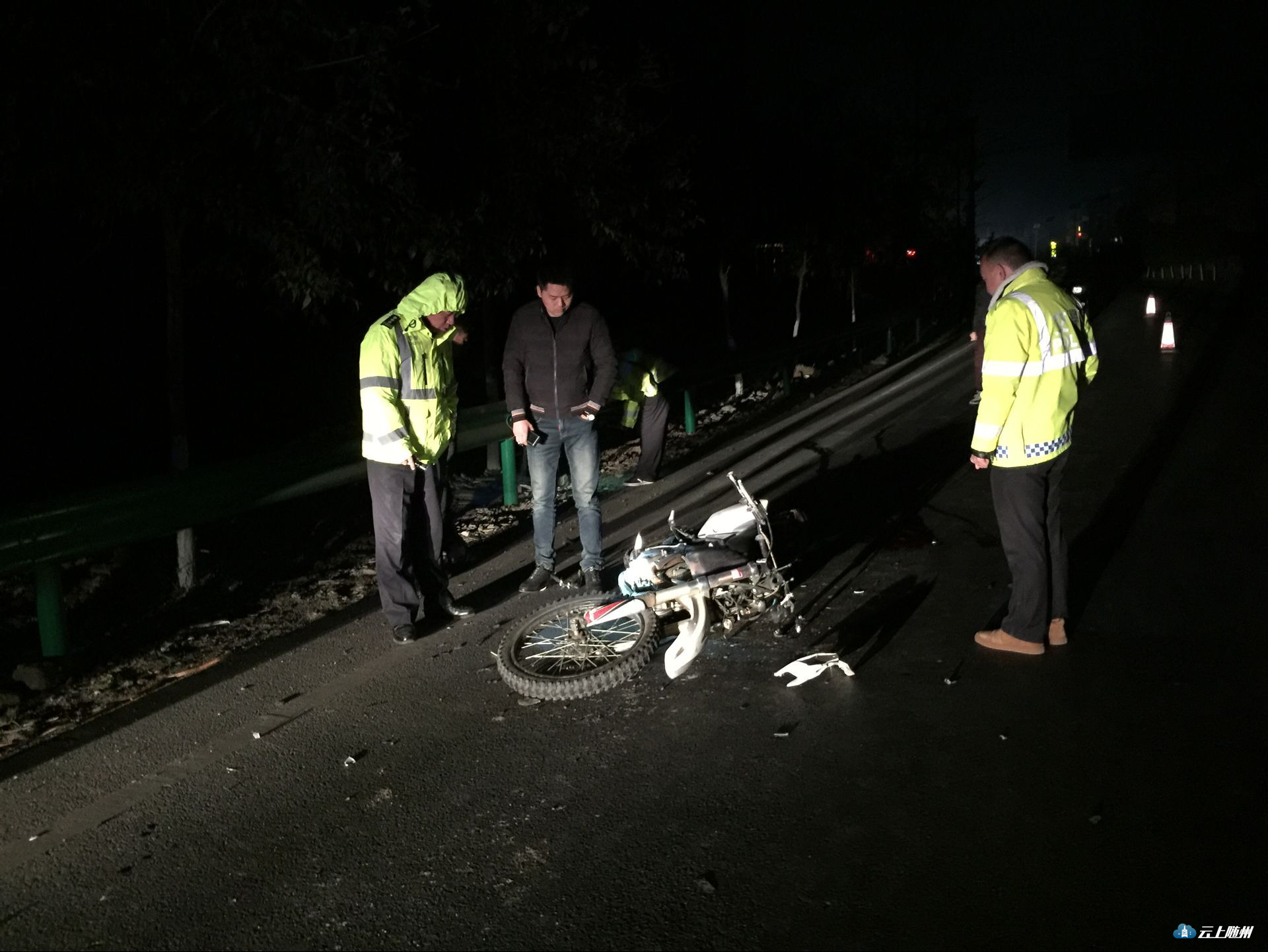 2017年12月23日20时40分许,随县公安局交警大队二中队接到群众报警,“在306省道56公里路段发生一起交通事故,现场有一辆两轮摩托车倒在路上,旁边躺着一名中年男子,伤者可能已经死亡了。”二中队民警迅速赶到现场,确认伤者已经没有了生命迹象。民警一边向大队事故中队汇报案情,一边组织对现场进行前期勘察及现场处理。副大队长兼事故中队中队长周兵、民警金洋正在小林镇办理另一起案子,接到警情后,他们迅速驱车近百公里,赶往现场。看了现场情况,经验丰富的周兵断定这又是一起交通事故逃逸案。在听取先期到达事故现场的民警的汇报后,仍放不下心,他立即召呼民警金洋,两人对事故现场进行细致的复勘。在手电光的照射下,现场只有两轮摩托车被撞击部位的散落物,还有一些蓝色的油漆末。