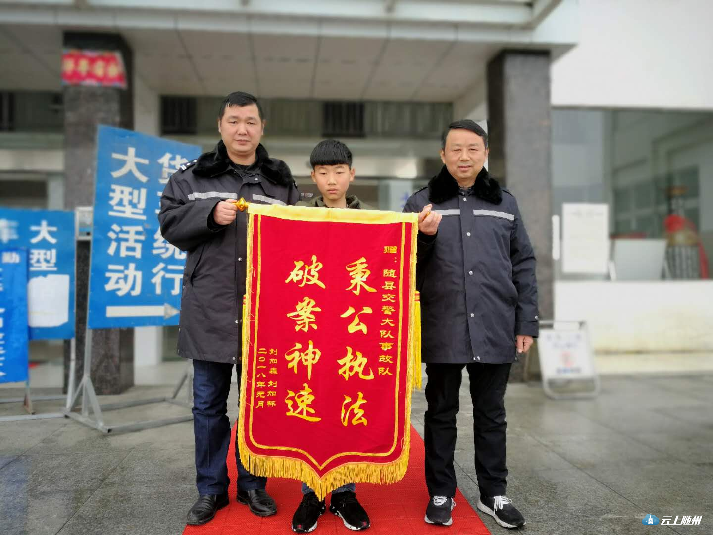 “我们送来一面锦旗,感谢随县交警速破‘逃逸案’,是你们用艰辛与付出维护了我们受害人和家庭的利益。”1月16日上午,家住随县洪山镇许家冲村一位十五、六岁的小伙子在其亲戚的陪同下,冒雨专程来到随县公安局交警大队事故中队,送来绣有“破案神速,秉公执法”的一面锦旗,并腼腆地对民警表达了感激之言。