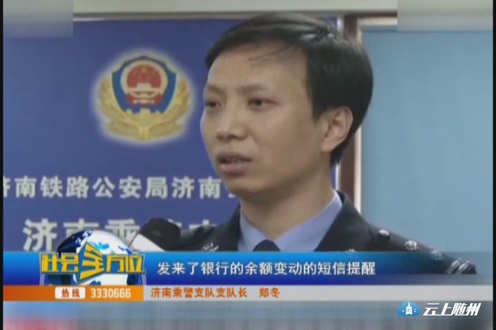 济南乘警支队支队长 郑冬:他的手机被盗了之后呢,更换了新的手机之后,发来了银行的余额变动的短信提醒,这个提醒意味着他在没有支付自己的资金的情况下。他的资金被别人给盗刷了。