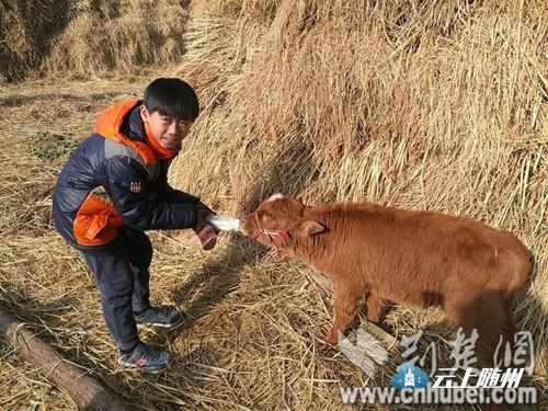 孩子给牛喂奶