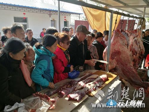 市民购买现场宰杀的安欣牛肉