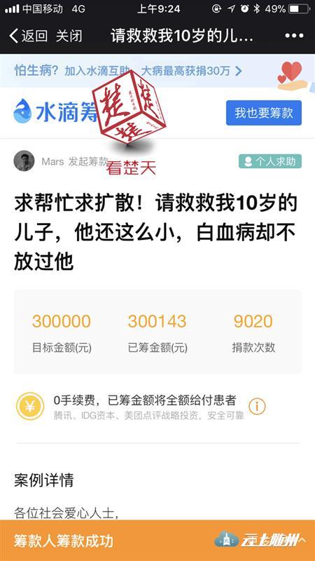 16下午,正在医院做义工的水滴筹公益志愿者黄思阳建议,尝试一下通过“水滴筹”平台,发起网络募捐,最大金额可以设定为30万元。水滴筹是国内第一家免费的公益筹平台,从未想过通过网络求助的林强,一开始并没有多大信心,于是口述了孩子的病情和治疗情况,由义工组织了一篇文章,以“请救救我10岁的儿子,他还那么小,白血病却不放过他”为题,在当天下午5点10分左右,把求助信挂在网上。