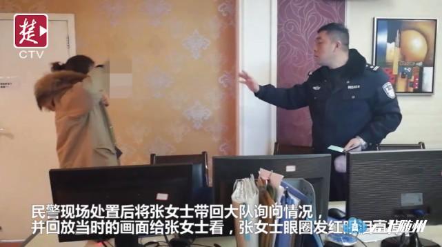民警紧急处置现场后将该车和张女士一起带回大队询问情况,并回放当时路面的监控画面给张女士看。张女士眼圈发红眼泪直掉。
