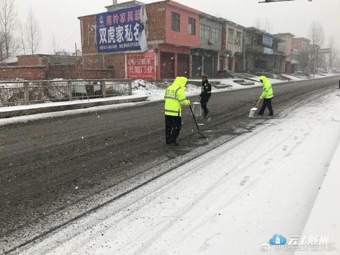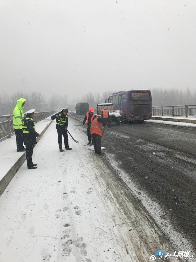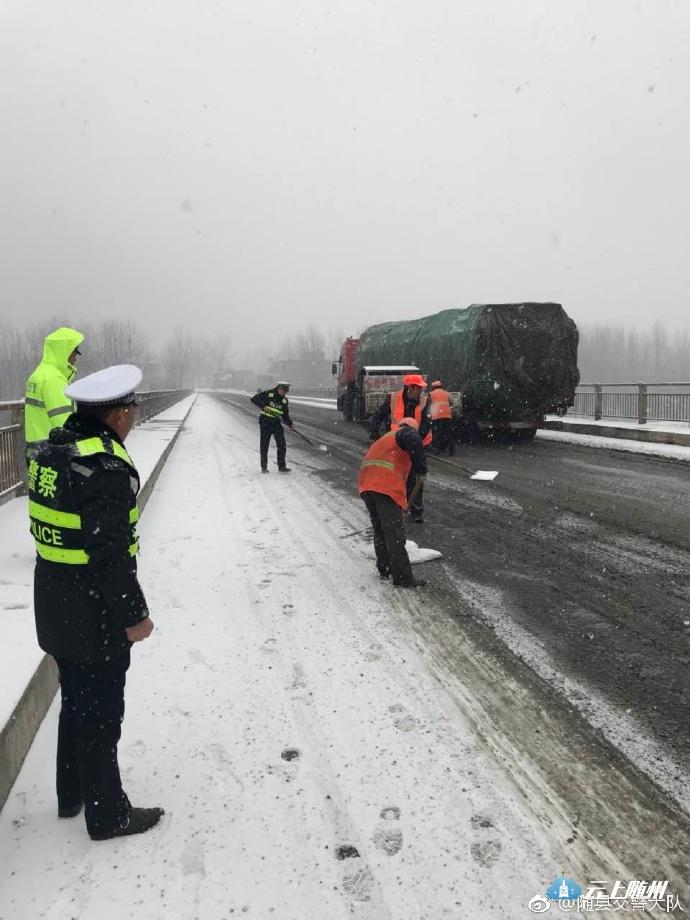 受昨晚降雪影响,目前,随县辖区内新316国道历山厥水大桥、312国道淮河大桥路面有结冰,交警、公路养护部门正组织撒盐融雪,无车辆滞留,其他道路通行正常!