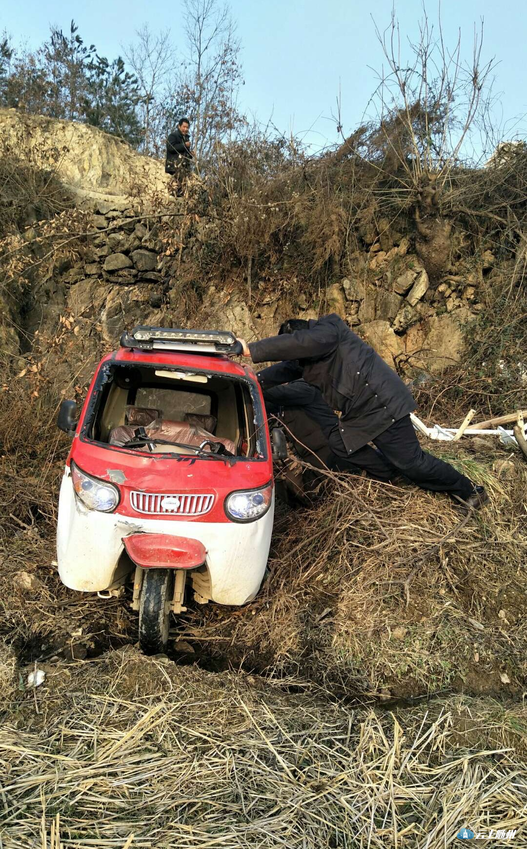 通讯员刘慧、吴凌桐报道:1月23日,一辆老年代步三轮电动车不慎翻下山坡,幸好被路过的民警遇见。民警紧急救援,所幸车上人员没有受伤,车辆被安全救出。