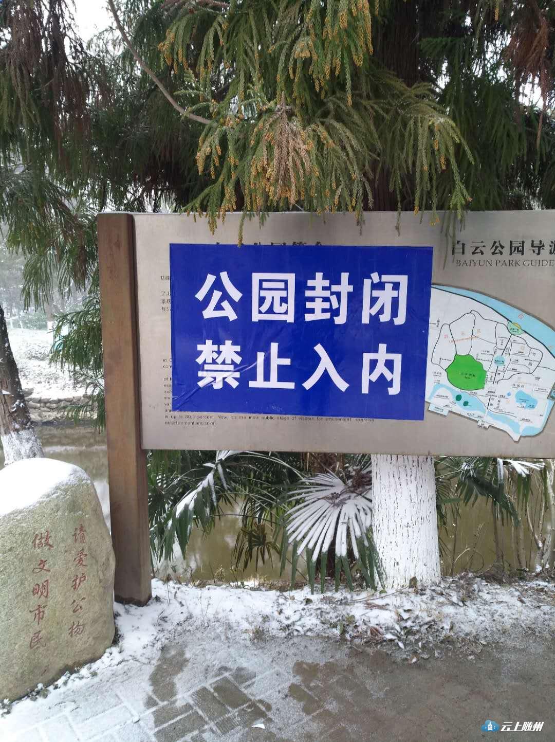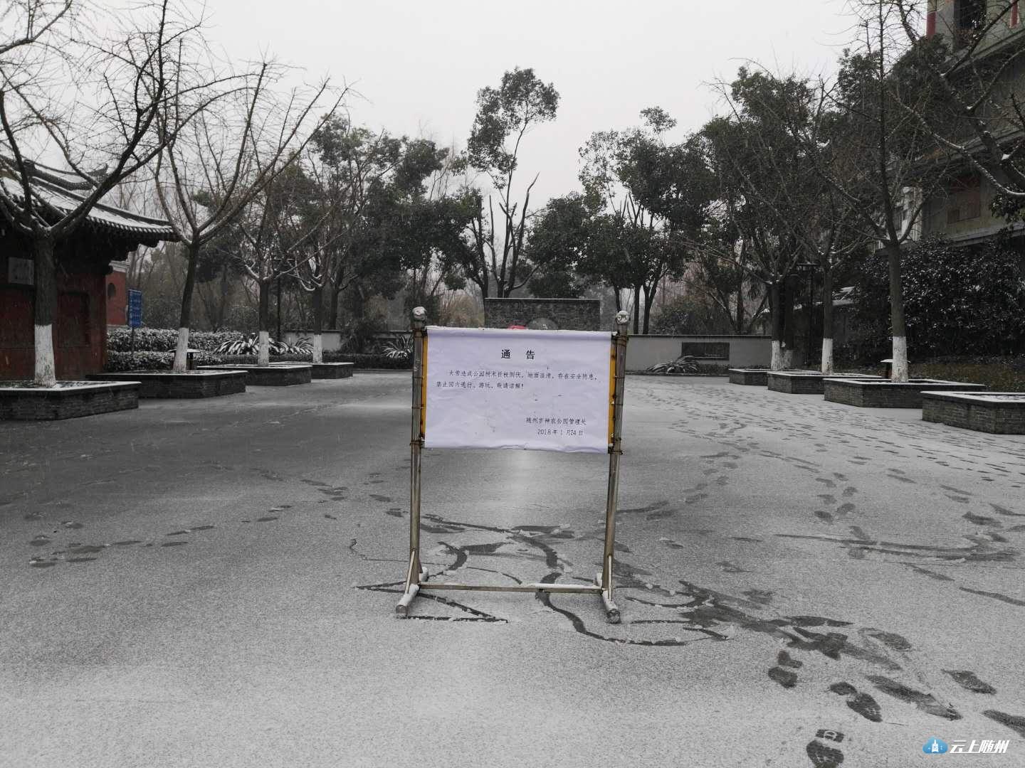 截至24日下午5点,随州城区公园、广场、小游园均在园区内易滑路段铺设防滑垫,在各出入口树立安全警示牌,对园内植物进行初步排查工作,并安排值守人员不间断巡查,后期将视情况采取闭园措施。