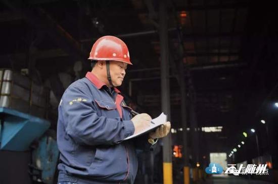 ↑华翔精密熔炼工程师池跃峰在车间门口记录(2017年11月1日摄)。他是一位在熔炼行业30多年的老铸工。