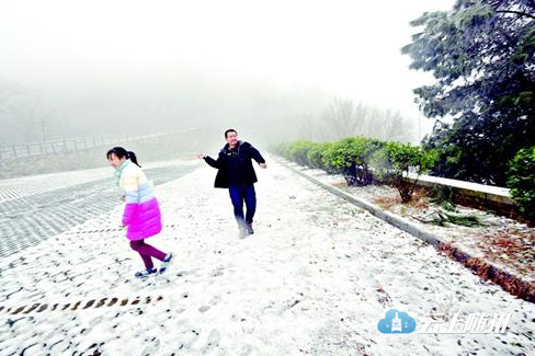 小吴是黄陂本地人,他的朋友梁先生是广东江门人,正好这几天在武汉做项目,午后小吴就带他来木兰山看雪,车停在半山腰,步行到山顶。“好兴奋!真正的积雪。”梁先生把刚拍的照片和视频拿给记者看,不仅看到了少见的雪凇,通往山顶的道路积雪较厚,他和小吴慢慢走一段,滑一段,这种滑雪也挺好玩的。