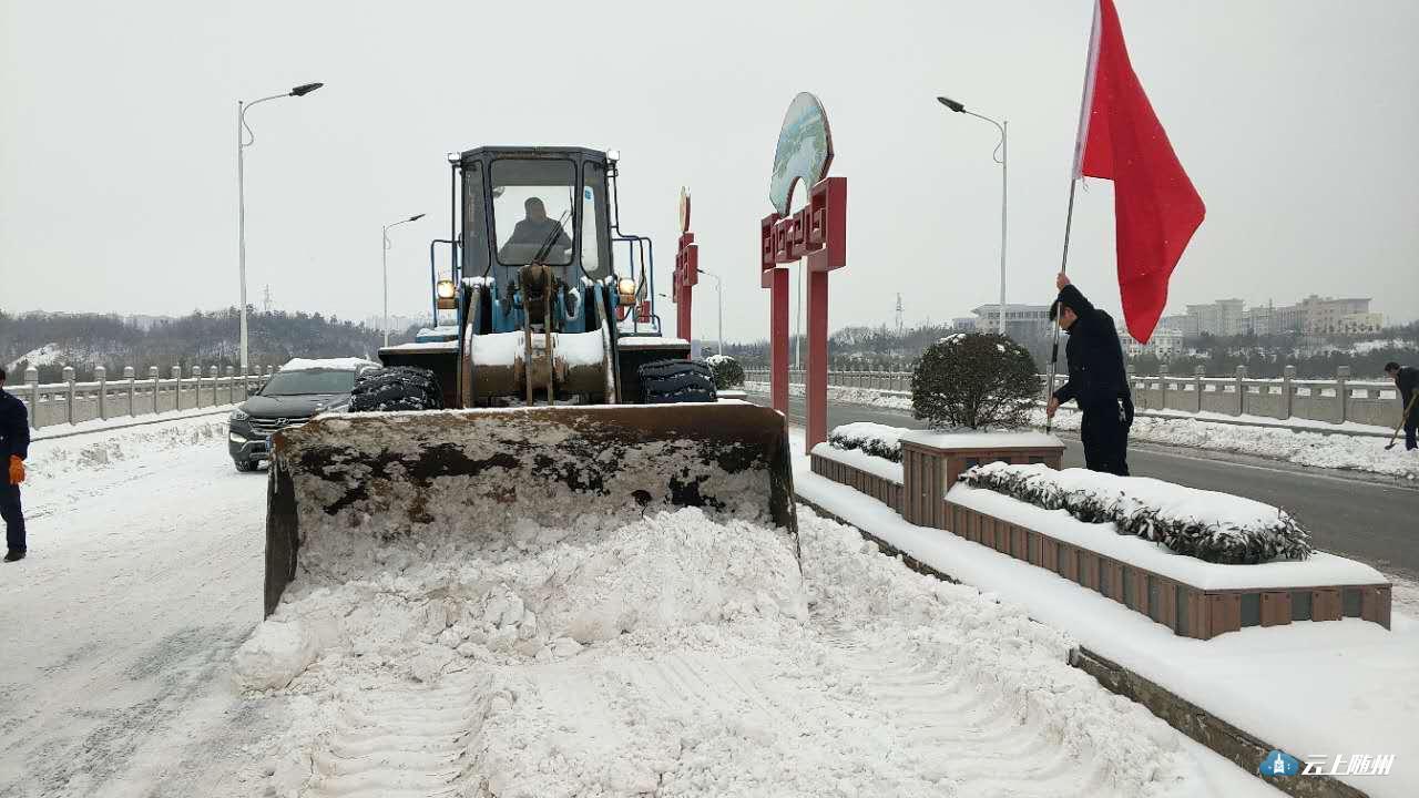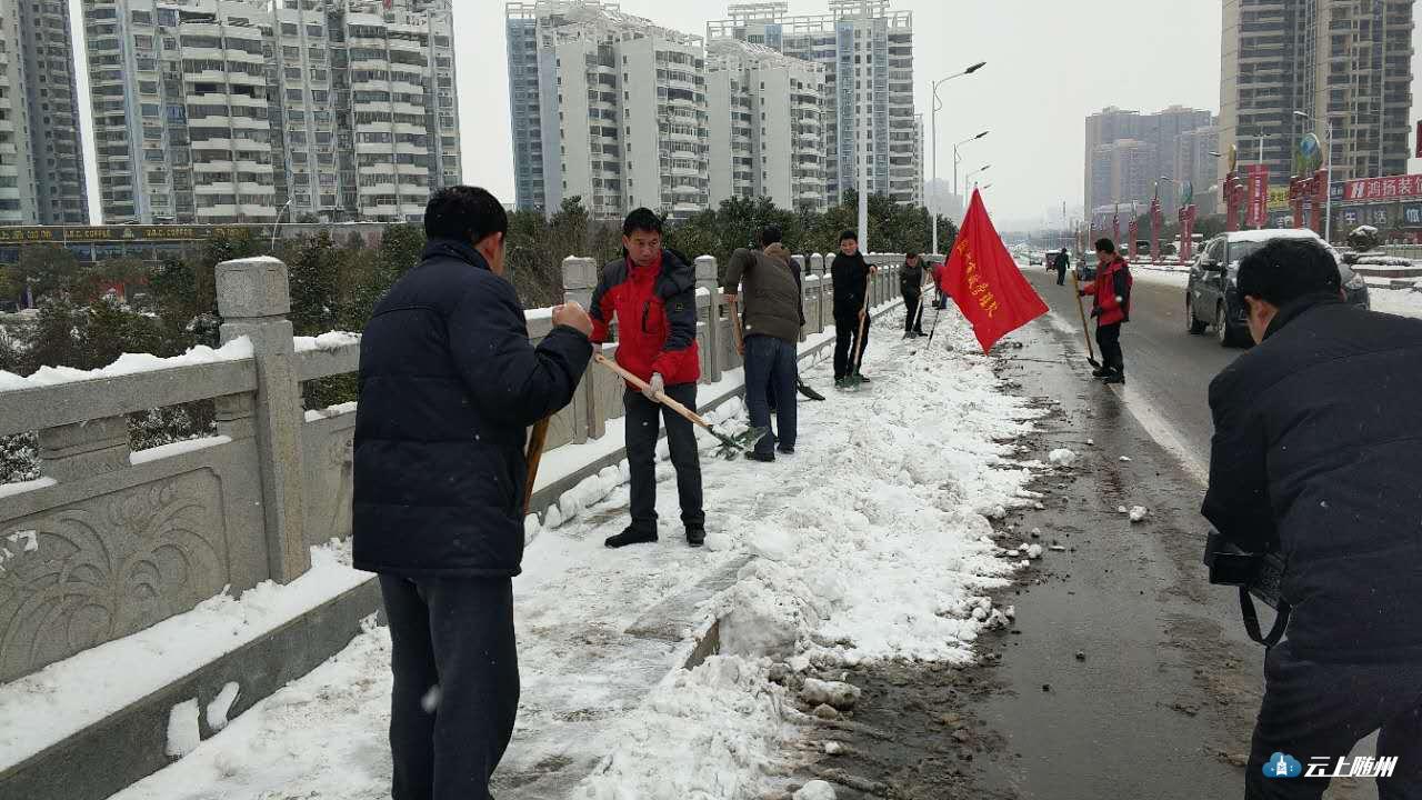 桥梁上积雪,易造成交通事故。在府河大桥上,市政处干部职工正在铲除桥两旁人行道上的积雪,与桥面上洒盐铲雪的市环卫局职工们交相辉映,一幅热火朝天的场面。在编钟大道桥东头,市排水处组织唐勇先锋队的志愿者们积极铲雪,很快,一条干净整洁的大道呈现在人们面前。