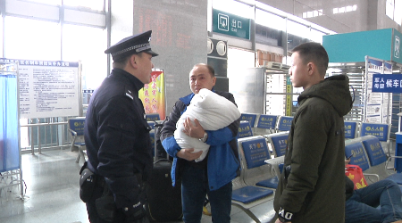 了解情况后,民警首先将父子三人带到母婴候车区,将厚被子借给他们,然后帮他们联系最快到达的一趟动车。原本李先生准备到汉口,但由于暴雪天气,导致许多列车晚点,民警建议他们乘坐最近的一趟前往武昌车站的动车。