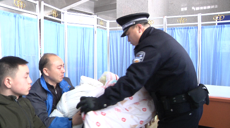 昨天上午,在随州火车站一楼候车大厅,车站派出所副所长涂耀麟正在候车大厅巡逻,旅客李先生匆忙走来向他寻求帮助,说孩子刚出生四天,由于患上了肠胃方面的疾病,需要紧急前往武汉儿童医院进行救治。可是大雪封路,武汉的救护车无法赶来,只好自己带大儿子到火车站搭车。