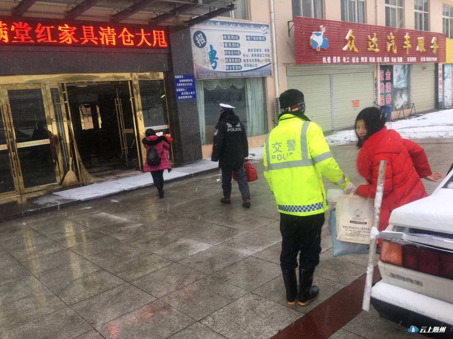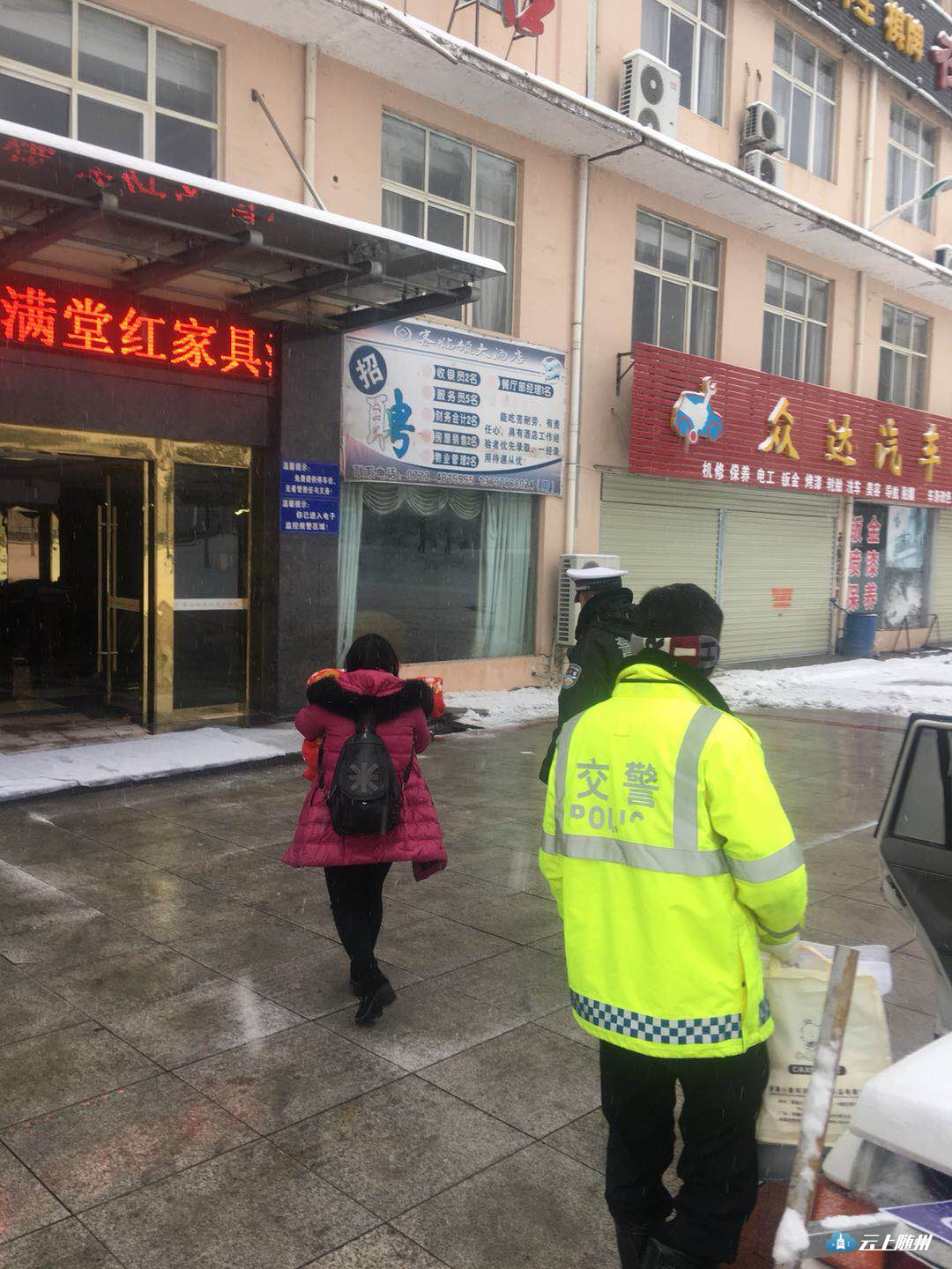 1月25日,随县普降中到大雪 ,道路积雪结冰,严重影响车辆通行。随县交警全员上路巡逻、疏堵,护航平安路。