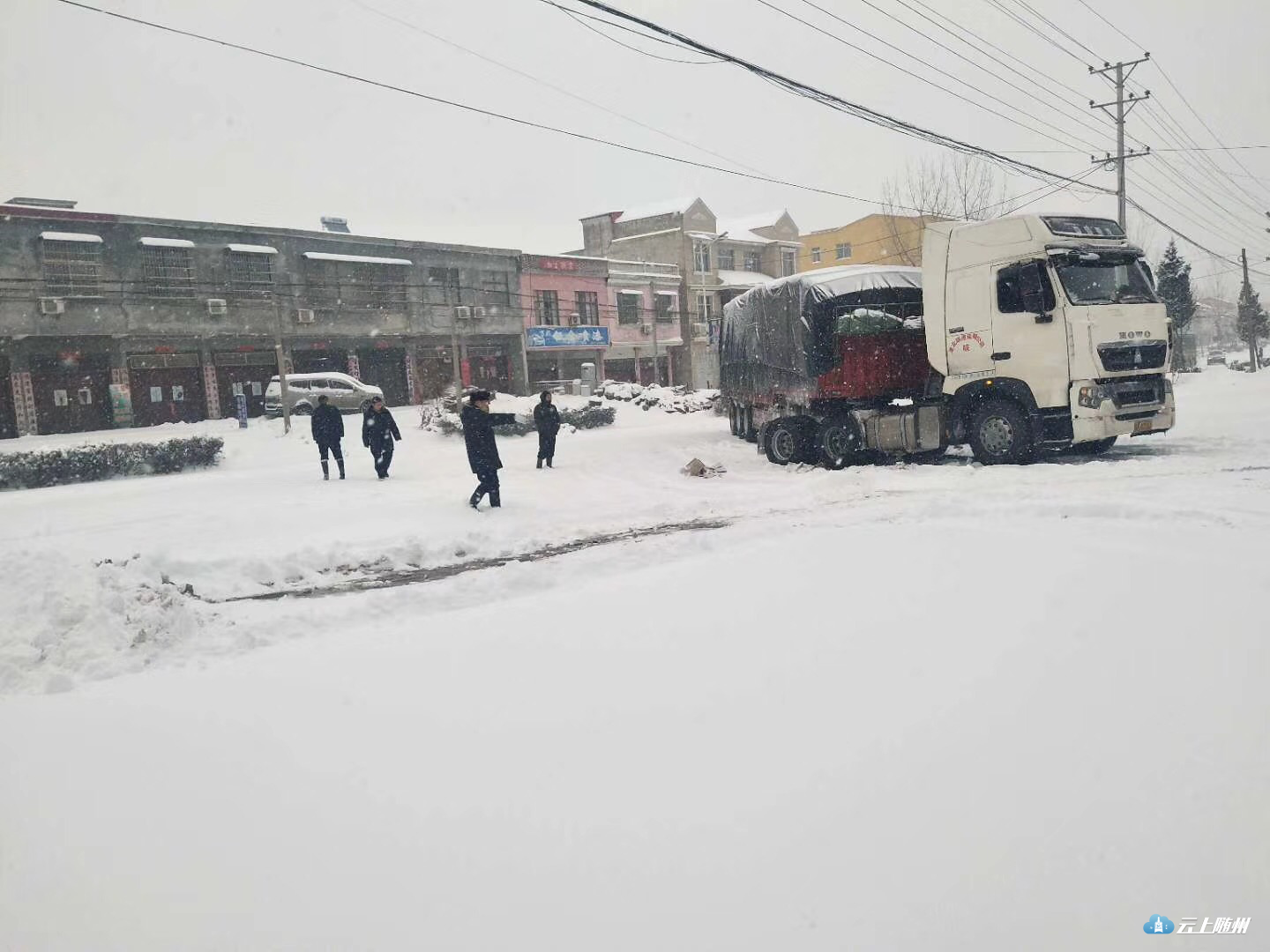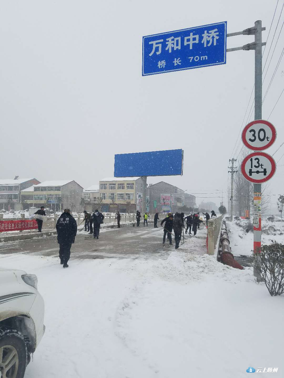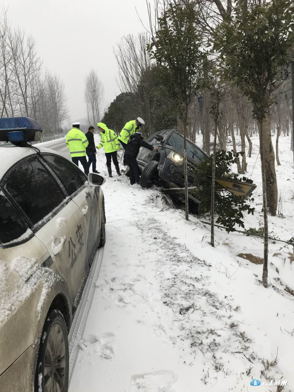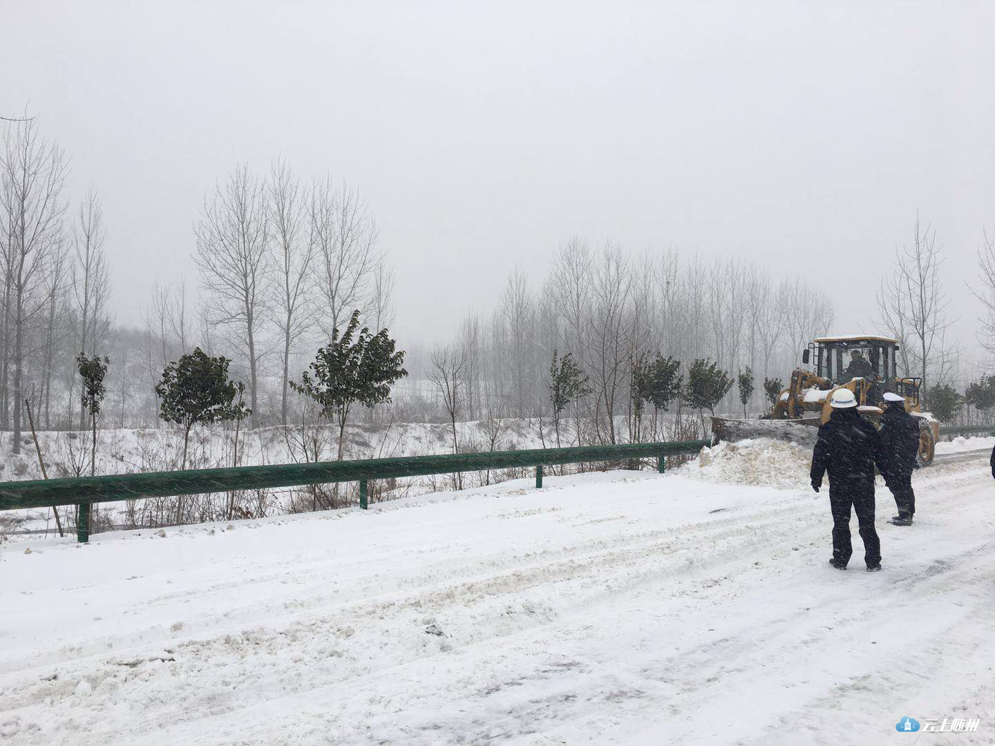 “雪道”忙碌的身影。25日晨,大雪还在飘飘落落,316国道上已经被积雪覆盖,一中队中队长郭华驾驶着警车在国道上巡逻,他不时用话筒提醒过往车辆“减速慢行”。在三道河路段,因拆桥导致便道车辆通行缓慢,有民警在冒雪指挥,并时不时帮助推车。在该路段两端,大型车辆分流禁行。二中队辖区以山区为主,中队紧盯桥梁、涵洞、急弯、陡坡等易积雪路段,通过设置“大雪天气,限速30”、“道路结冰、减速慢行”等临时性提示牌,重点引导驾驶人按照恶劣天气条件下降速通行。目前,306省道环潭大上坡、郧阳大上坡,216省道有车辆滞留,民警正在副大队长王家志、中队长瞿联伏的带领下,采取撒盐融冰或启动铲车作业,清除坡道积雪。据悉,大洪山、温泉等旅游景区道路已经全部封闭。三中队是管理国道最长的中队,316国道29公里,其中弯急坡陡的“魔鬼路段”就在其中。25日凌晨,净明路段出现了拥堵,副教导员唐德勇、中队长齐燕峰带领民警协警采取撒盐融冰,用铁锹铲雪等办法紧急疏堵。随后,教导员刘昌儒带领民警增援,经过近一个小时的努力,让道路恢复了通行。212省道黄土坡路段冰雪天容易堵车,四中队中队长贺勇带领民警一直没离开过,他说,“从昨天下午到今天中午,该路段反反复复堵了四、五次,我们撒盐、铲冰一直在行动,我们用手推车,救助的小车不下50辆。”他边说着,边卷起被冰雪泥土弄脏的裤腿。驻守随北门户的五中队,抗雪保畅压力也不小。随北比随南的气温要低两度左右,312国道穿境而过,在第一轮暴雪考验时,这里的疏堵任务十分艰巨。所以这次在人员安排上交警大队充实了警力,办公室主任戴玉平包保该中队,他与中队长王玮主动向沿线的淮河、小林镇党委政府汇报工作,到得了党委政府人力、机械的支持。在大雪来临时,中队民警在当地派出所民警、路政等部门的大力协助下,依靠社会力量合力抗灾保畅,大大降低了抗灾难度。五中队还积极应对高速封闭分流车辆的管控,对长途客运、危险品运输等重点车辆,劝其到就近的酒店、停车场停车休息,或采取警车带路护送出境。