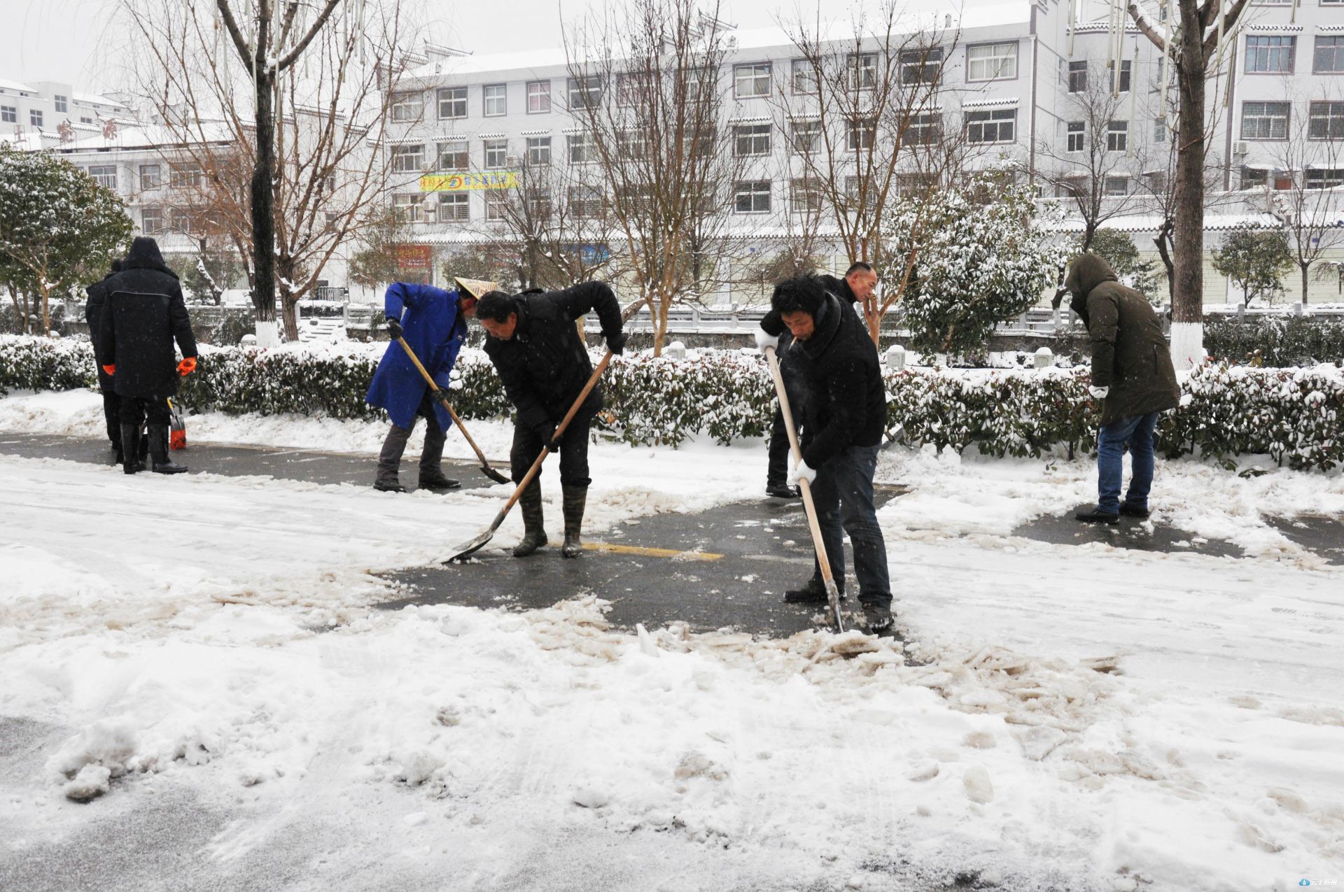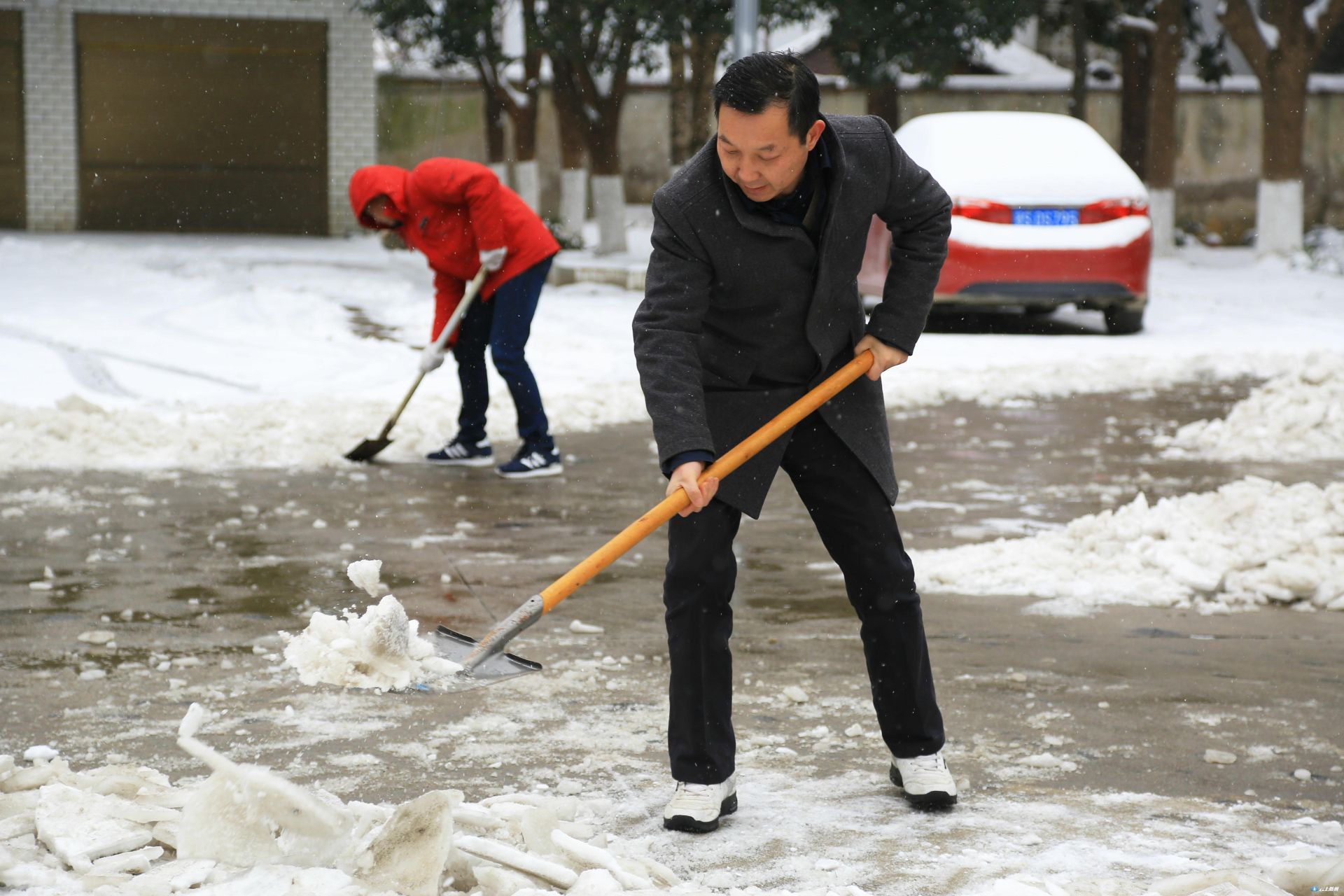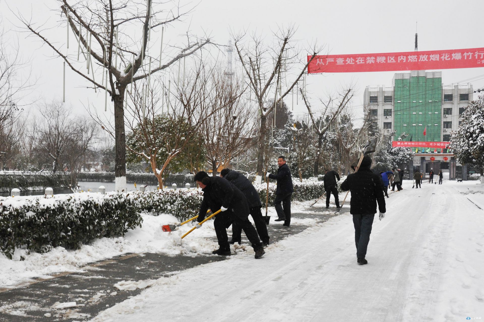 为确保集镇居民出行安全,景区管理局紧急召集全体干部职工及环卫、绿化公司全体人员组织了应急队伍。用铁锹、打雪竹竿、扫把等除雪设备,迅速清除道路清雪、绿化苗木打雪减压等工作。交通分局紧急调用一吨工业盐在333省道及重要路段全面撒融雪剂,预防路面结冰,确保集镇居民出行安全,并安排部署铲雪车随时待命。长岗镇通知各村加强巡查力度,在各道路口安排人员值班,加强道路交通安全。景区还号召全区各单位组织干部职工清除各单位附近路段及景区内重要路段路面积雪。在大洪山管委会机关大院,景区党工委书记汪海涛、管委会主任黄荆带头拿起铁锹,与单位干部职工一道除冰。