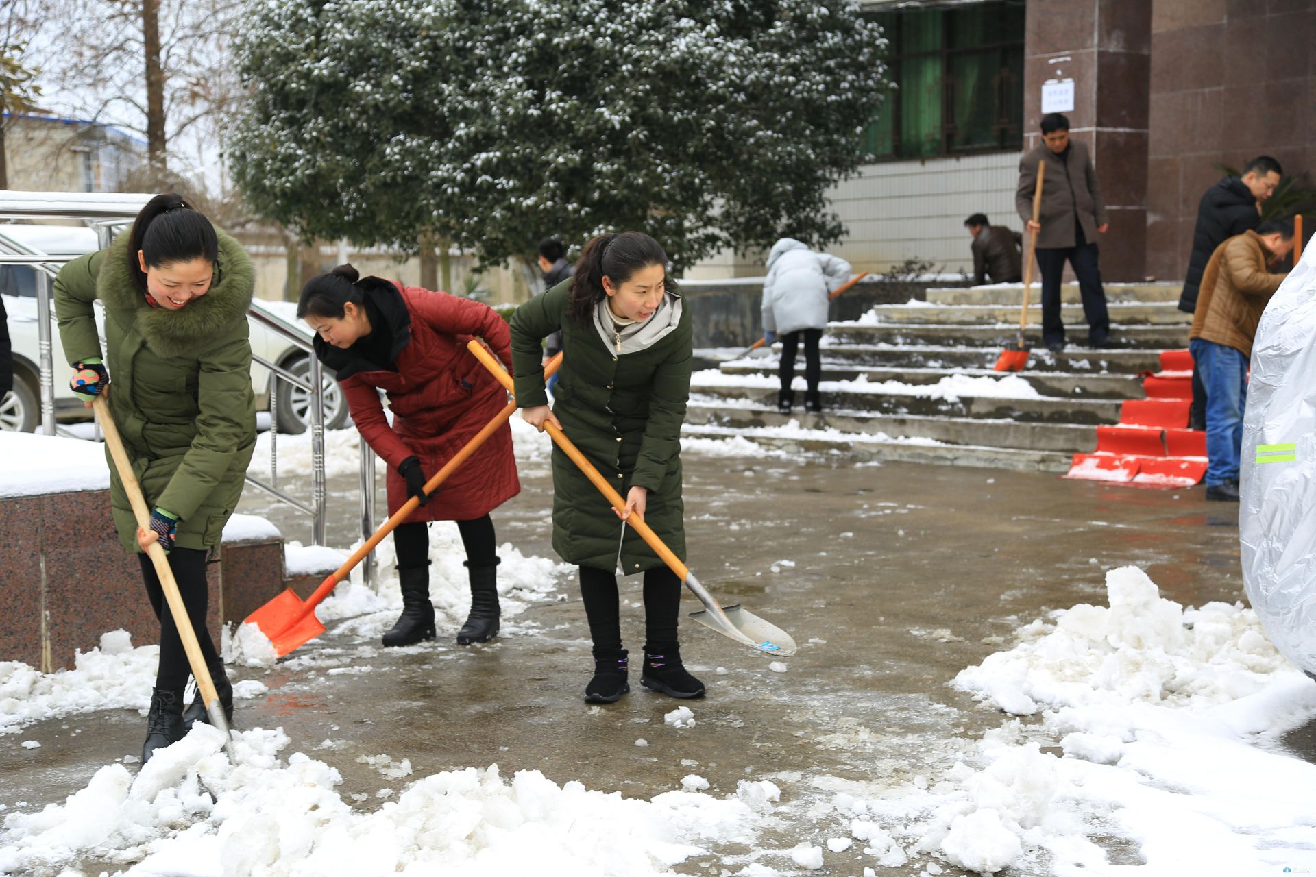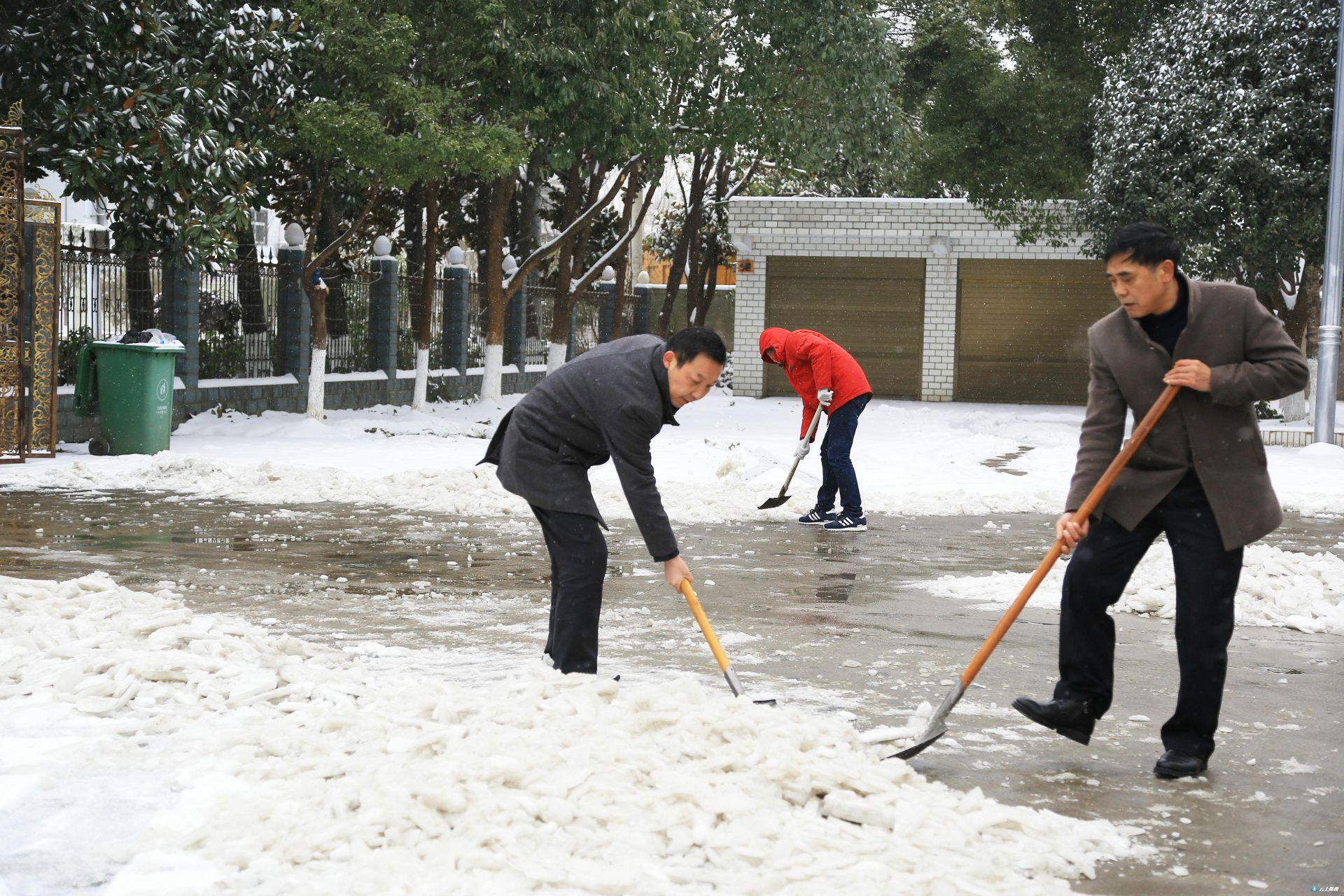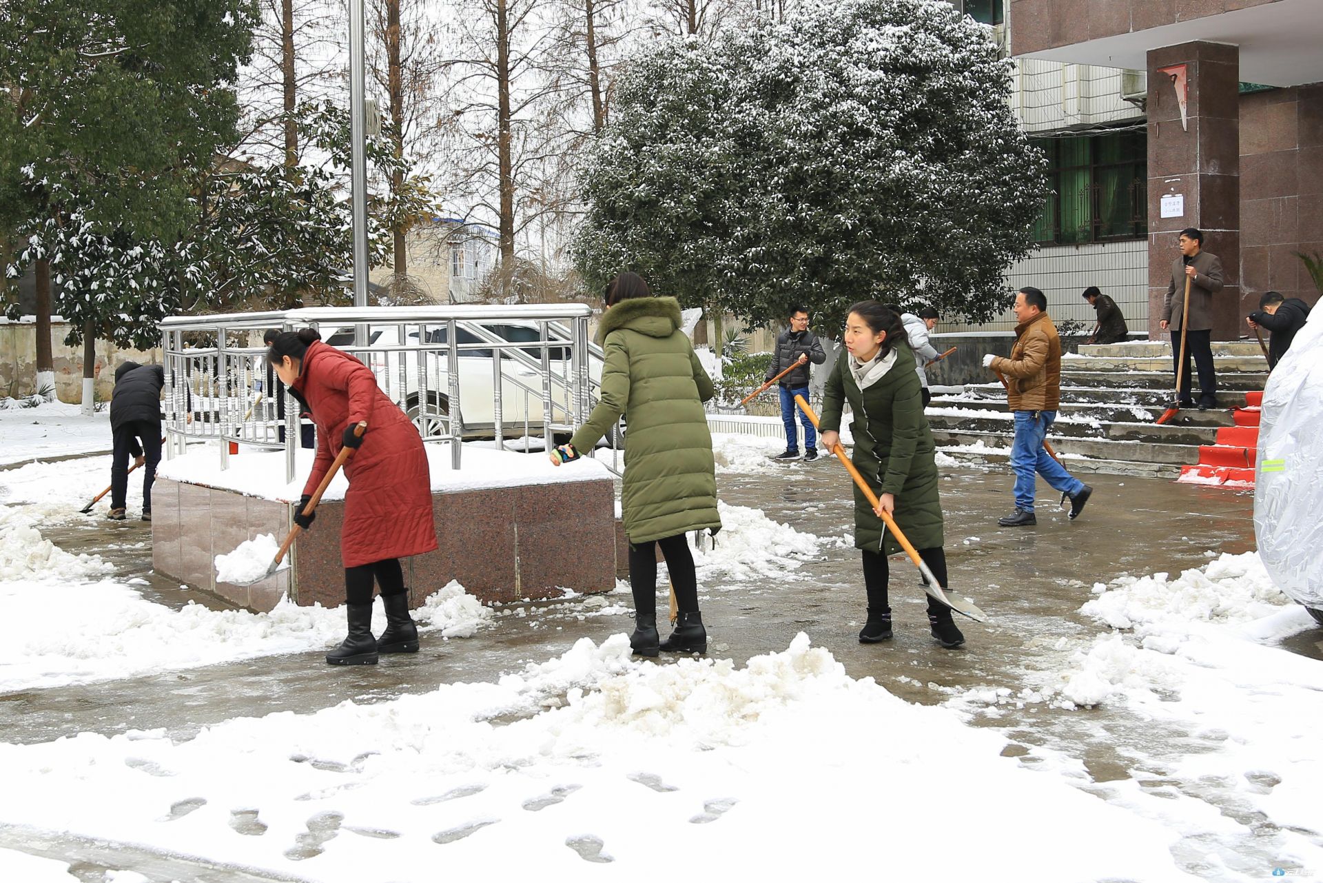 为确保集镇居民出行安全,景区管理局紧急召集全体干部职工及环卫、绿化公司全体人员组织了应急队伍。用铁锹、打雪竹竿、扫把等除雪设备,迅速清除道路清雪、绿化苗木打雪减压等工作。交通分局紧急调用一吨工业盐在333省道及重要路段全面撒融雪剂,预防路面结冰,确保集镇居民出行安全,并安排部署铲雪车随时待命。长岗镇通知各村加强巡查力度,在各道路口安排人员值班,加强道路交通安全。景区还号召全区各单位组织干部职工清除各单位附近路段及景区内重要路段路面积雪。在大洪山管委会机关大院,景区党工委书记汪海涛、管委会主任黄荆带头拿起铁锹,与单位干部职工一道除冰。