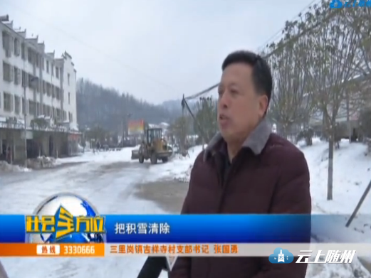 【采访】随县三里岗镇党委书记 梁勇:为了确保老百姓的顺利通行,我们三里岗镇组织了全镇的干部,另外各个村组织了部分村民,对我们所有的路段积雪进行了清理,特别是上坡、桥梁等危险路段重点进行了人工清理,确保道路畅通,老百姓顺利通畅。