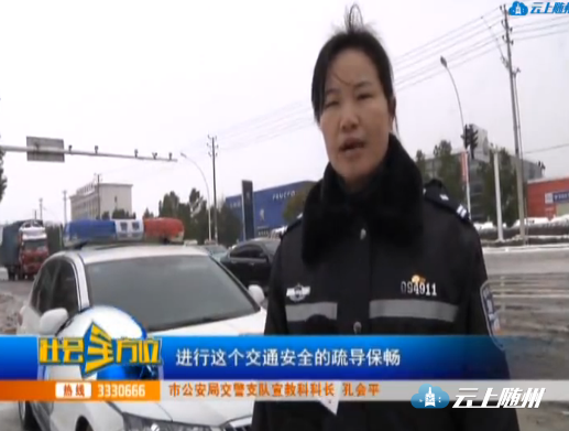 【同期声】市公安局交警支队三大队二中队民警 余秋波 由于这几天雨雪天气路面比较滑,然后从黄石武汉方向过来的客车,经过随州境内的时候,我们用警车引导他们到路边,加装防滑链,然后在白天天气转暖,冰雪融化了部分之后,再引导他们通过随州市区到达目的地。