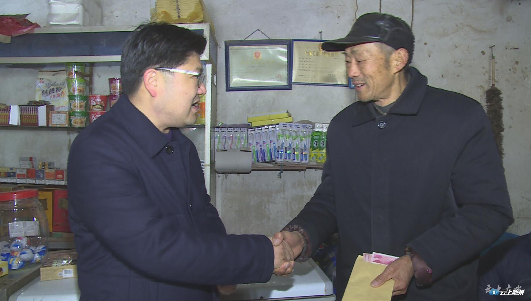 黄继军还先后看望了优扶军人吴光才、退休村干部熊宗艺、困难群众许学友,为他们送去慰问金和越冬物资,同他们亲切交谈,倾听诉求,了解所需。