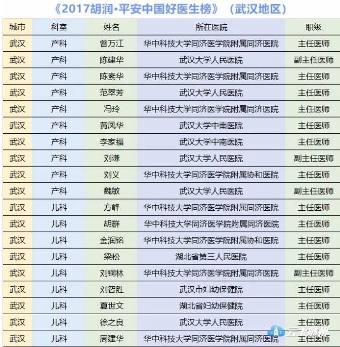 近日,胡润研究院与平安好医生联合发布第一届《胡润·平安中国好医生榜》, 湖北 290名 医生上榜, 以后挂号的时候可以参考一下哦~