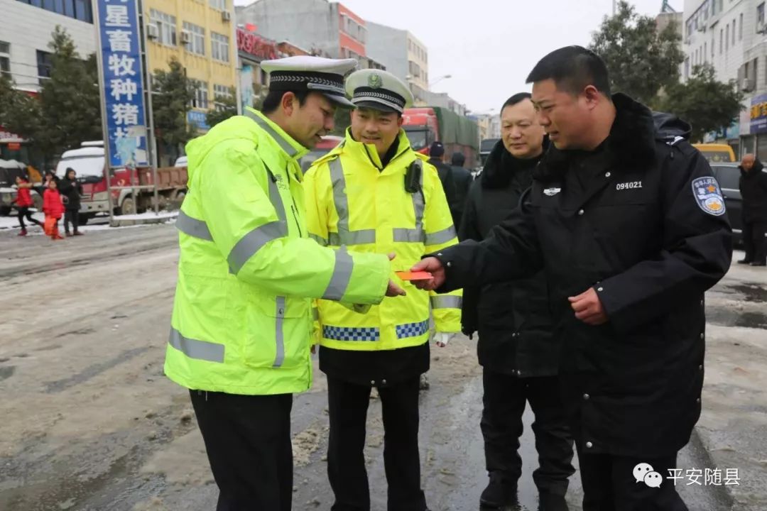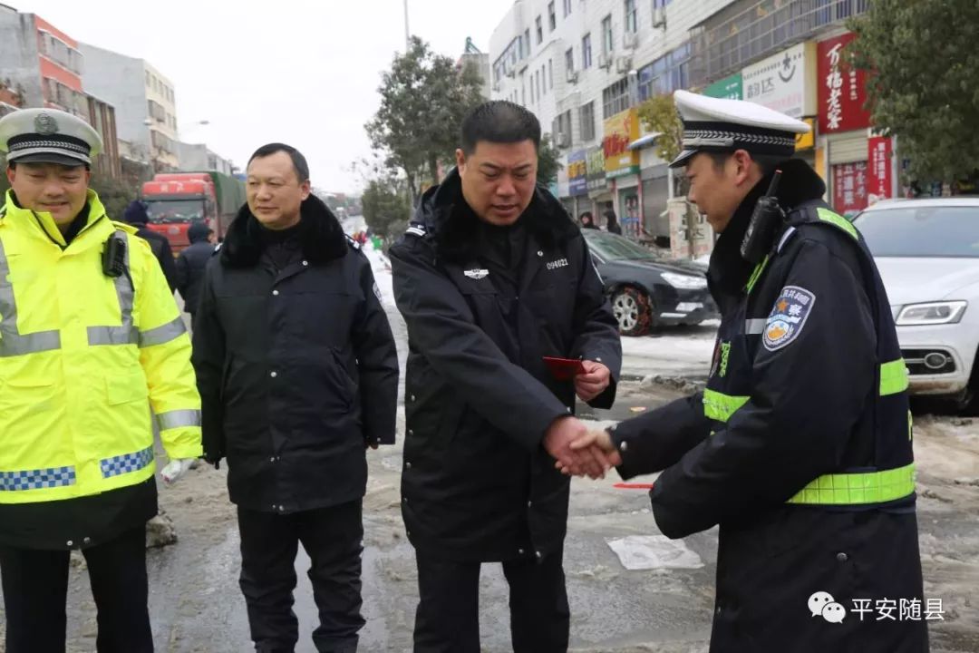 进入2018年1月以来,因连降大雪,随县成为雪灾重灾区,路面结冰严重,交通受到前所未有的影响。为保障道路畅通,维护出行群众生命财产安全,全县公安民警全力除雪保畅,涌现出一大批为民服务的先进典型。作为治堵保畅的主力警种,交警大队全体同志在兄弟单位的配合下,战严寒、斗风雪,通宵达旦在国道和危险路段疏堵交通,保证了全县道路安全畅通,受到人民群众高度赞誉。