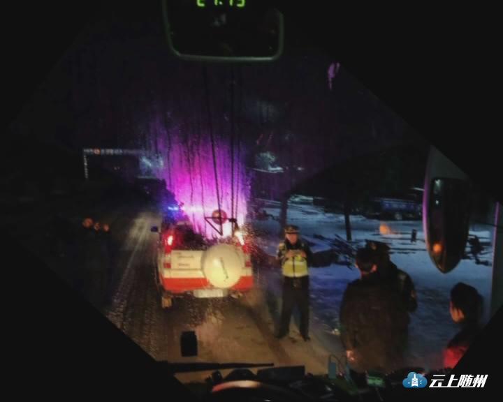 广水蔡河治超站工作人员宋伟介绍,当天,他们正配合交警在路面进行除雪、巡查等工作,突然发现两辆河南籍大巴车被困在省道上,不能前行。