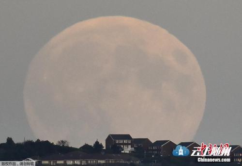 资料图:当地时间2015年9月27日,英国南部城市布莱顿,一轮巨大的“超级血月”当空悬挂。