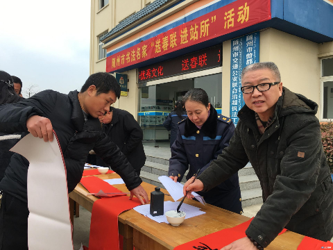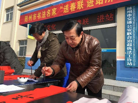 2月1日上午,由市委宣传部、市文联、市交通运输局主办,市公路局承办的书法名家“送春联 进站所”活动先后在广水市长岭公路管理站、曾都淅河治超站举办,来自市书协、美协、作协的十多位书法名家现场挥毫,为公路基层职工及站所周边群众送春联、送吉祥。