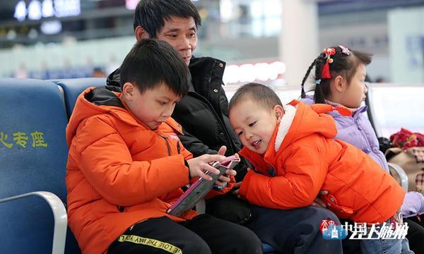 近日,广西南宁气温低迷,候车厅里大人小孩都穿着厚实棉服。(刘英轶/摄)
