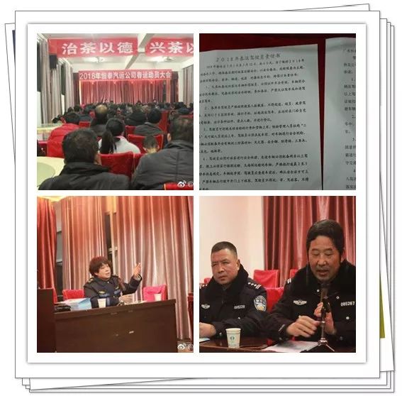 为了加强客运企业道路交通安全源头管理,有效预防和减少道路交通事故,确保2018年春运期间辖区道路交通安全、通畅,1月31日民警深入中心客运站开展2018年春运动员大会,签订春运交通安全责任书。
