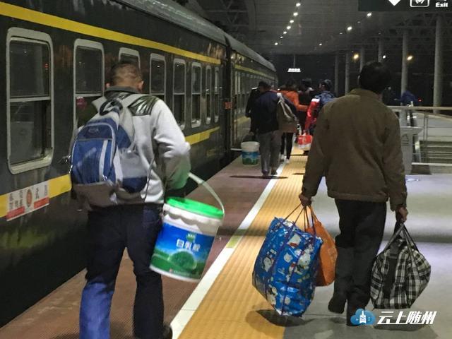 据列车员介绍,5日当晚21时左右,回家过年的老乡们,不少人,左手一个编织袋,右手一个涂料桶,快速奔向列车。