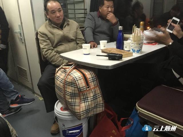 徐师傅说:“这桶结实,东西装在里面也不怕挤破,尤其是对他这种没有买到坐票的人,简直就是万能神器,随时当座位、当餐桌。要是车上三个人要是斗个地主,那就成了牌桌。