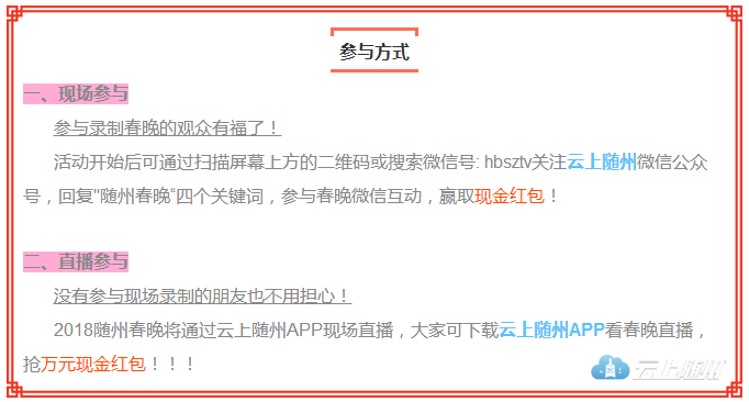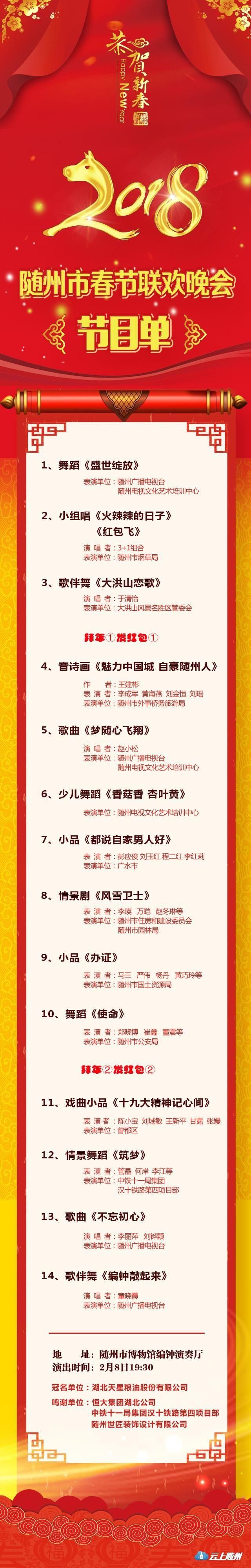 2018随州春晚节目单出炉了!届时还有红包发不停哦...