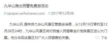 1、九华山对全省民警限时免费开放
